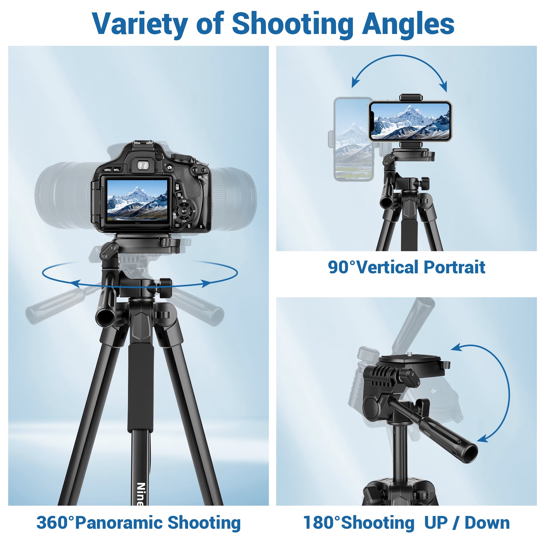 Wide Use: Camera tripod with a standard 1/4" screw mount, compatible with dslr cameras, Canon, Sony Nikon camera and all digital cameras, ring lights, and projectors, spotting scopes. Phone camera tripod is suitable for photographers, YouTubers, and content creators.