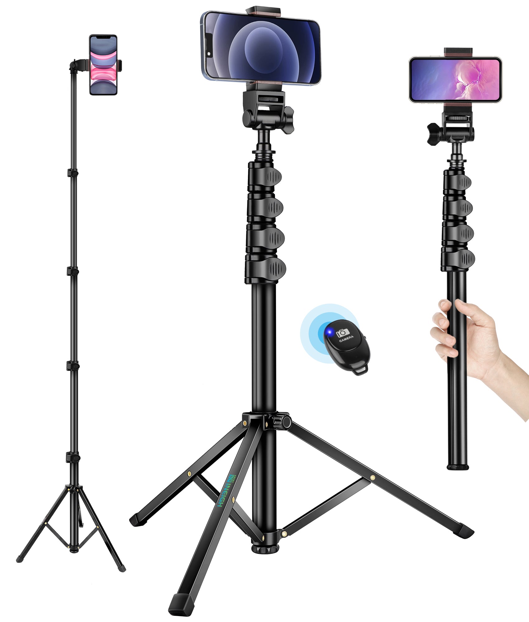 Phone Tripod, 70" Selfie Stick Tripod Stand Cell Phone Tripods with Remote Phone Holder Carry Bag, Aluminum Alloy Selfie Stick Tripods, Compatible with iPhone Samsung GoPro Smartphone(US)